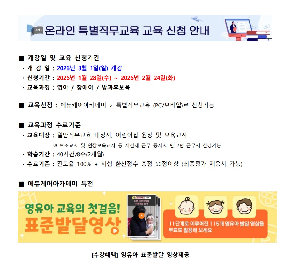 [¿ÜºÎ] º¸À°±³Á÷¿ø ¿Â¶óÀΠƯº°Á÷¹«±³À° 2026³â 3¿ù °³°¹Ý ±³À°½Åû ¾È³»