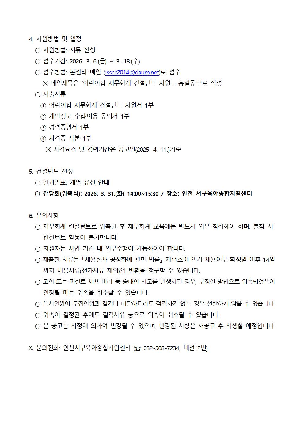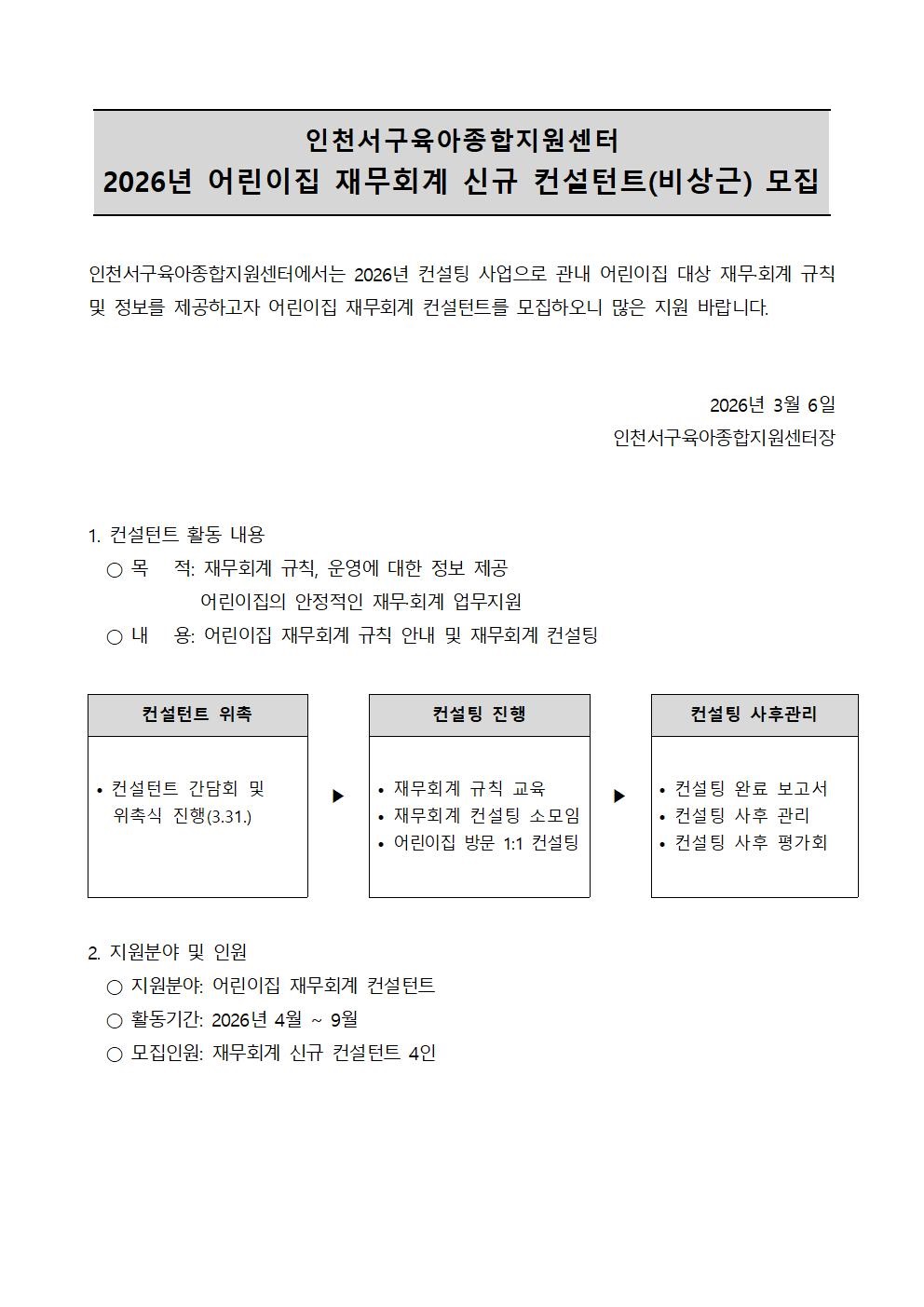 [º»¼¾ÅÍ]ÀÎõ¼±¸À°¾ÆÁ¾ÇÕÁö¿ø¼¾ÅÍ 2026³â ¾î¸°ÀÌÁý À繫ȸ°è ½Å±Ô ÄÁ¼³ÅÏÆ®(ºñ»ó±Ù) ¸ðÁý