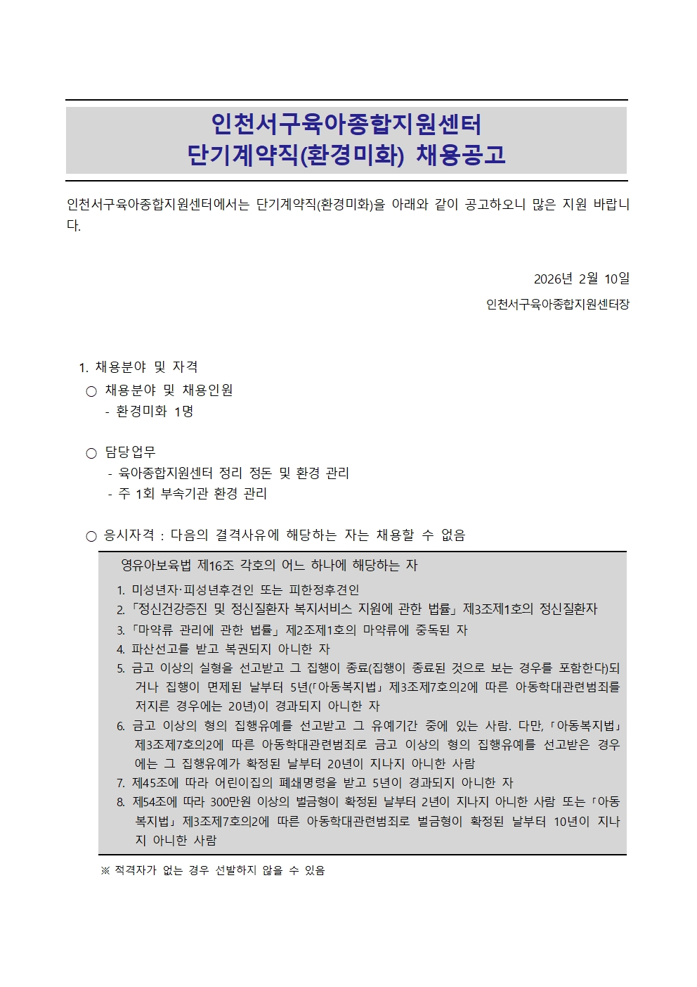 ºÙÀÓ 2. ÀÎõ¼±¸À°¾ÆÁ¾ÇÕÁö¿ø¼¾ÅÍ(´Ü±â°è¾àÁ÷) Áö¿ø¼.hwp