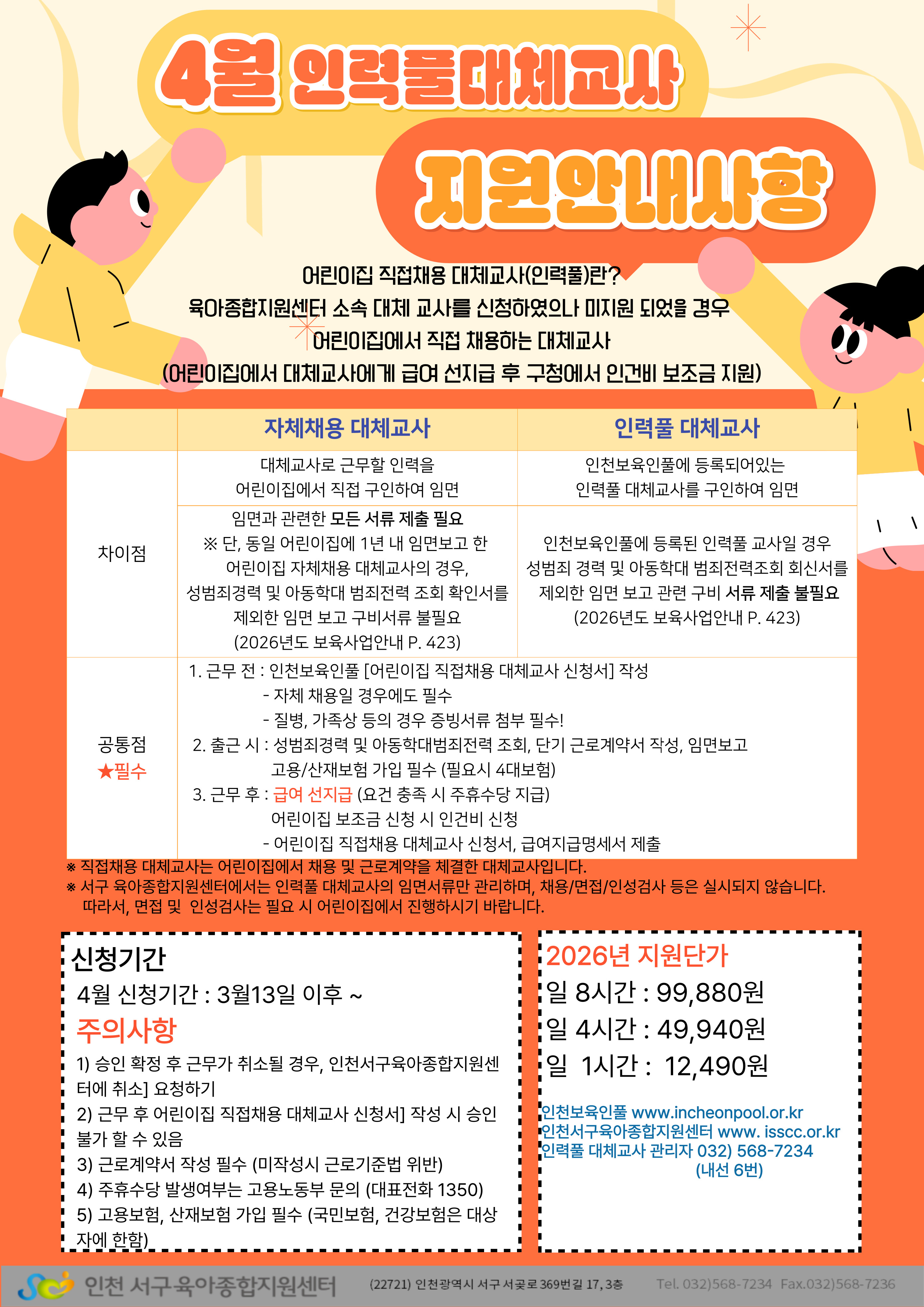[º»¼¾ÅÍ] 2026³â 4¿ù ÀηÂÇ® ´ëü±³»ç Áö¿ø¾È³»