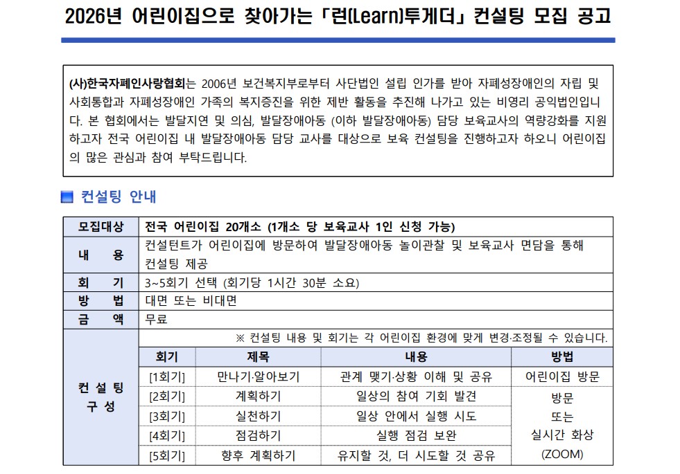 [Çѱ¹ÀÚÆóÀλç¶ûÇùȸ] '¹ß´ÞÀå¾Ö¾Æµ¿ º¸À°Áö¿ø »ç¾÷ ¡¸·±(learn)Åõ°Ô´õ¡¹' ÄÁ¼³ÆÃ ¸ðÁý ¾È³»
