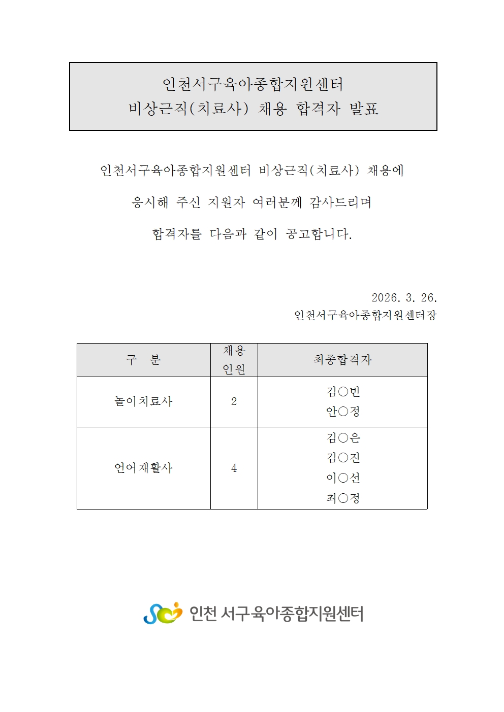 2026³â ºñ»ó±ÙÁ÷(Ä¡·á»ç) ä¿ë ÇÕ°ÝÀÚ ¹ßÇ¥