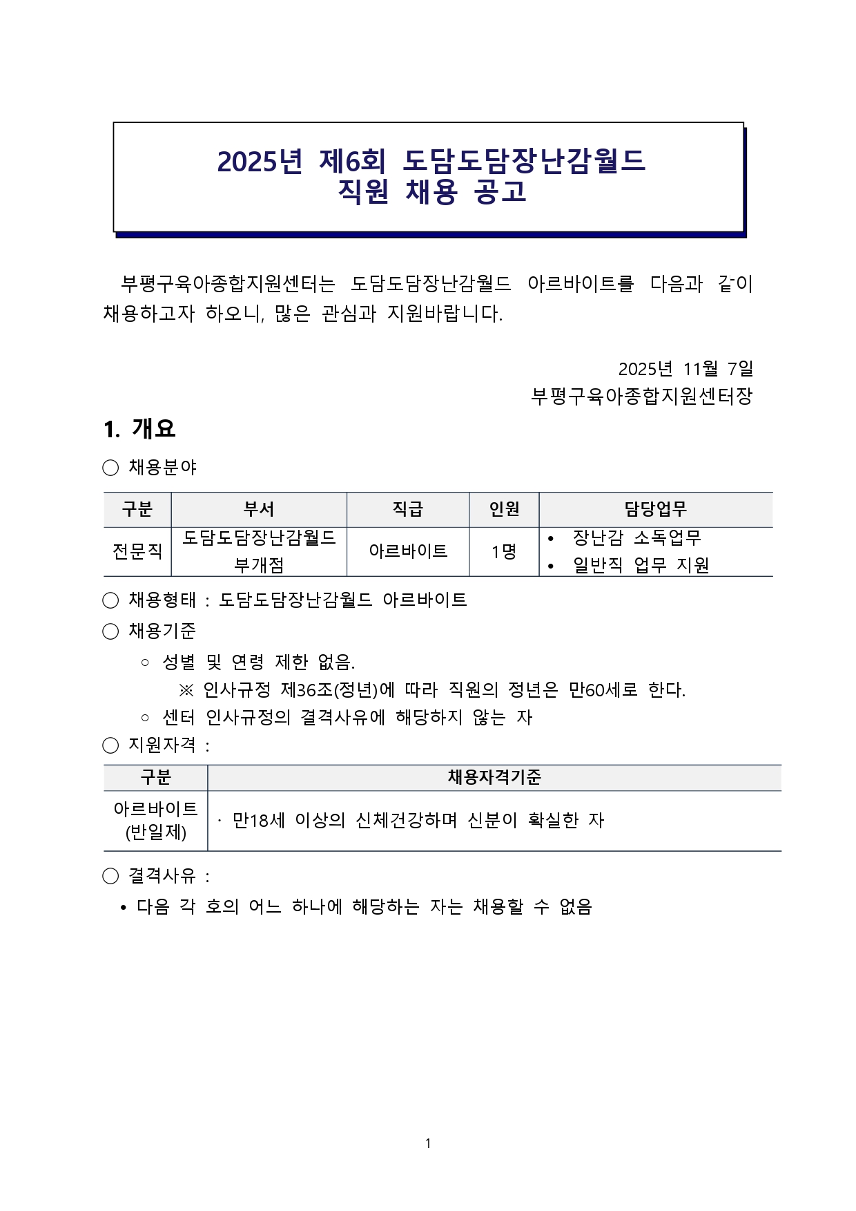 [ºÎÆò±¸À°¾ÆÁ¾ÇÕÁö¿ø¼¾ÅÍ] 2025³â Á¦6ȸ Á÷¿ø ä¿ë °ø°í