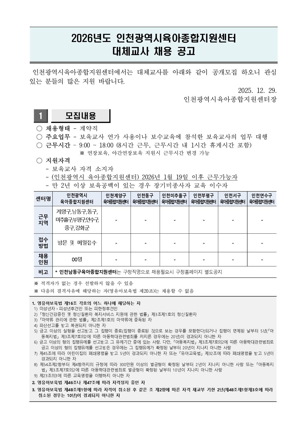 [ÀÎõ±¤¿ª½ÃÀ°¾ÆÁ¾ÇÕÁö¿ø¼¾ÅÍ] ´ëü±³»ç ÀηÂä¿ë