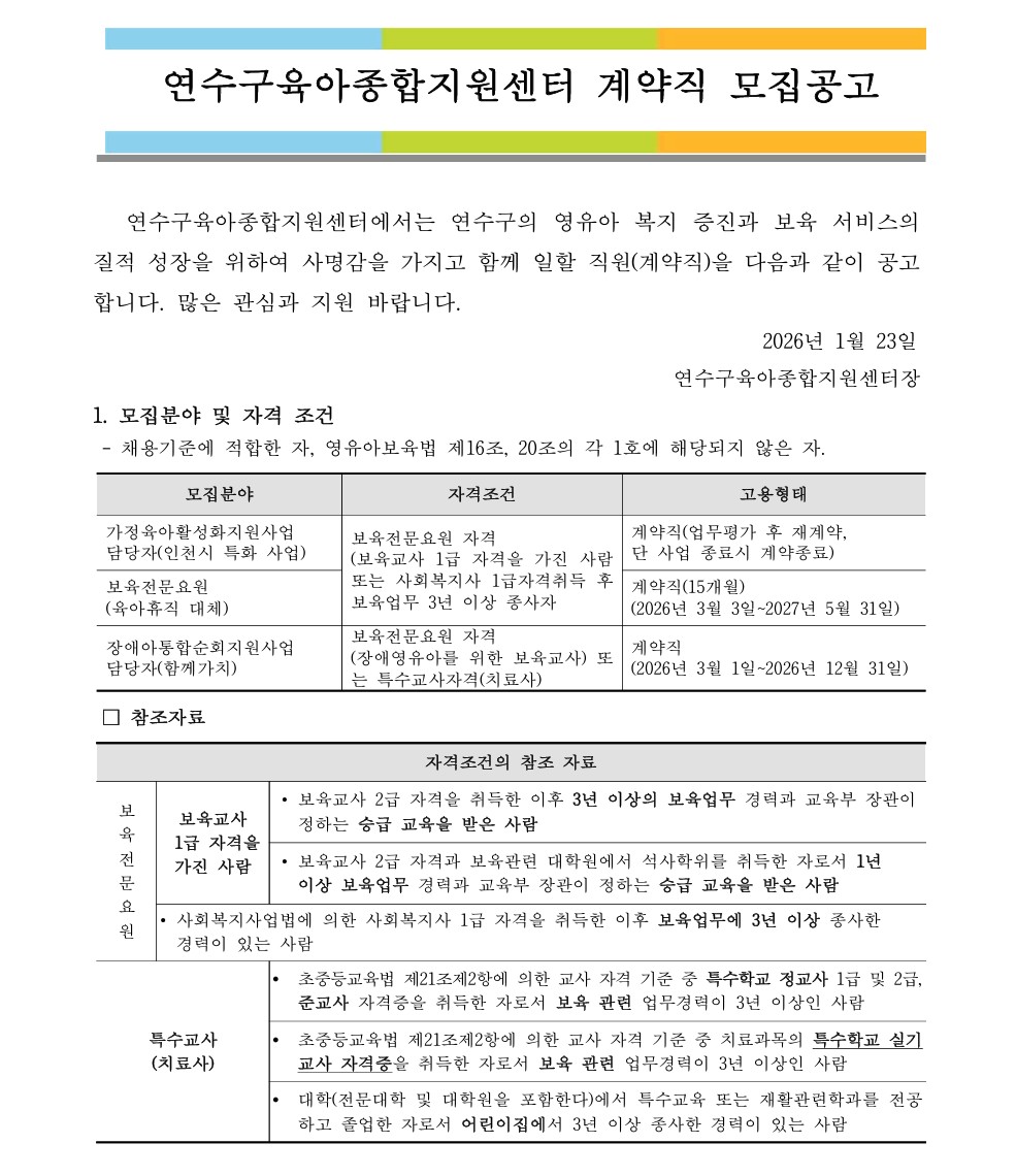 [ÀÎõ¿¬¼ö±¸À°¾ÆÁ¾ÇÕÁö¿ø¼¾ÅÍ] 2026³â ¿¬¼ö±¸À°¾ÆÁ¾ÇÕÁö¿ø¼¾ÅÍ Á÷¿ø(°è¾àÁ÷) ä¿ë °ø°í