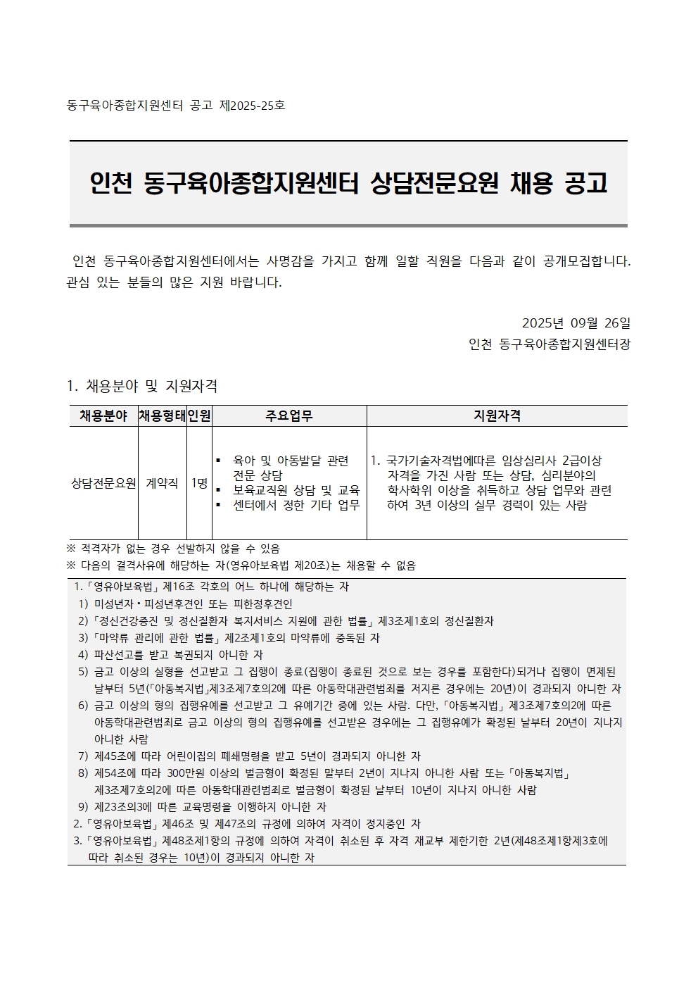 25-211 [ºÙÀÓ2] ÀÎõ µ¿±¸À°¾ÆÁ¾ÇÕÁö¿ø¼¾ÅÍ[»ó´ãÀü¹®¿ä¿ø] Á÷¿ø ä¿ë Áö¿ø¼.hwpx