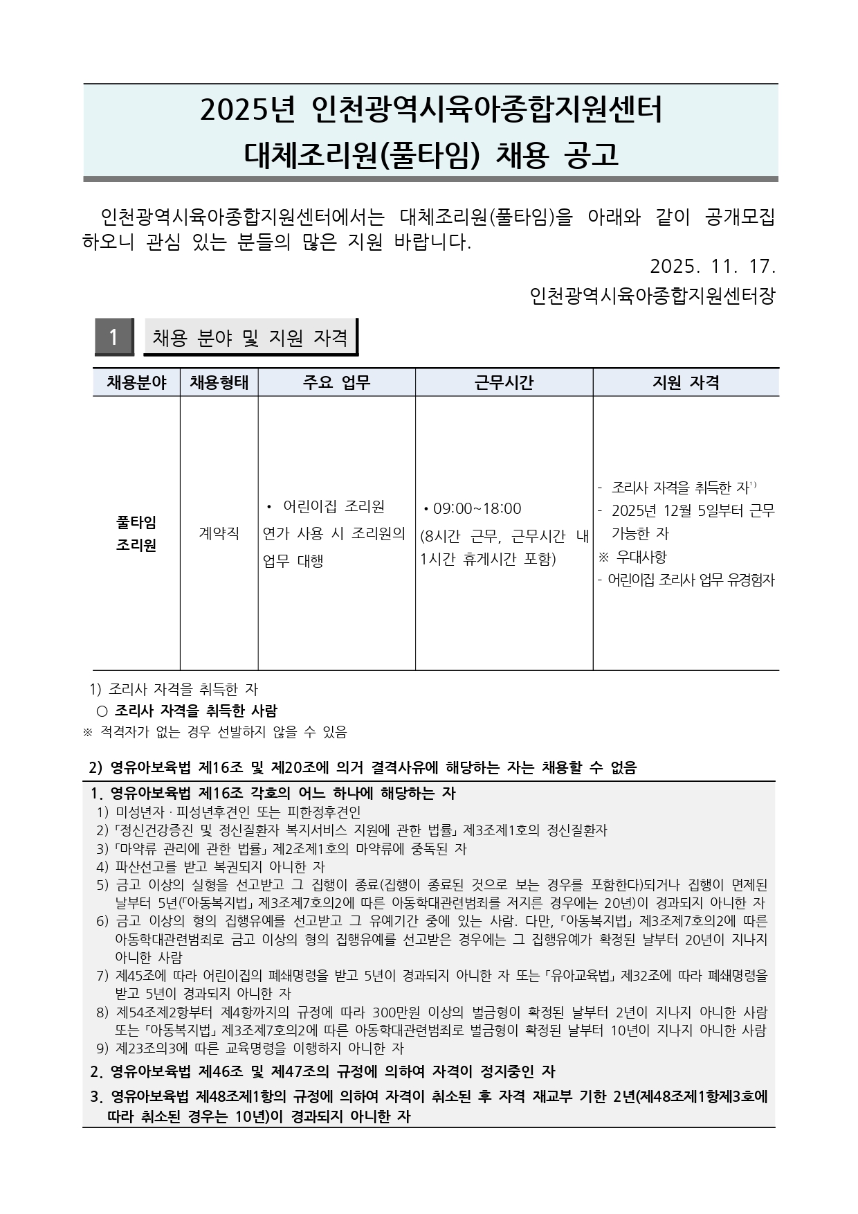 [ÀÎõ±¤¿ª½ÃÀ°¾ÆÁ¾ÇÕÁö¿ø¼¾ÅÍ] ÀÎõ±¤¿ª½ÃÀ°¾ÆÁ¾ÇÕÁö¿ø¼¾ÅÍ ´ëüÁ¶¸®¿øÁö¿ø»ç¾÷ ´ëüÁ¶¸®¿ø Àη ä¿ë °ø°í