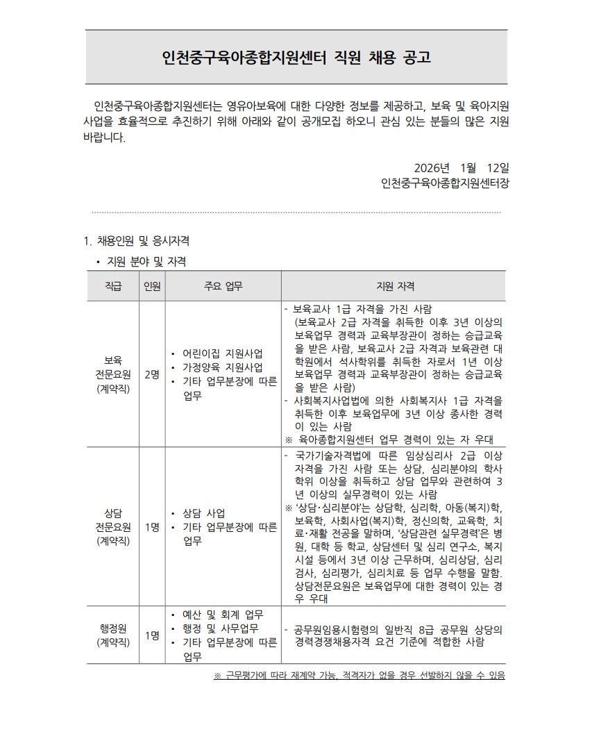 [ÀÎõÁß±¸À°¾ÆÁ¾ÇÕÁö¿ø¼¾ÅÍ] Á÷¿ø ä¿ë°ø°í °Ô½Ã