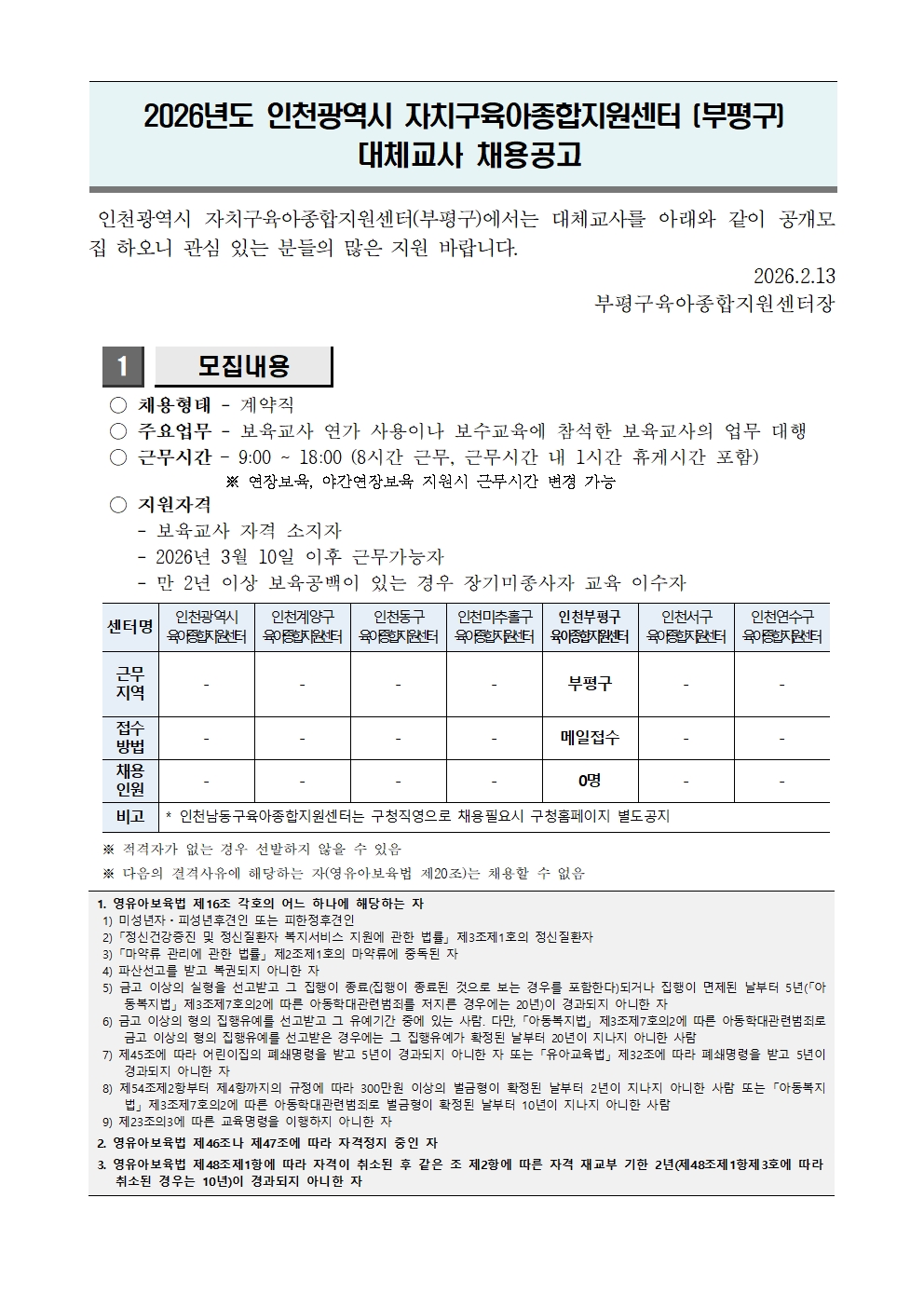 [ºÎÆò±¸À°¾ÆÁ¾ÇÕÁö¿ø¼¾ÅÍ] 2026³â ´ëü±³»ç ÀηÂä¿ë(2Â÷) °ø°í