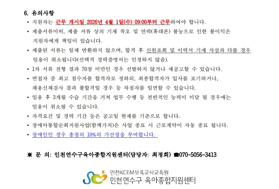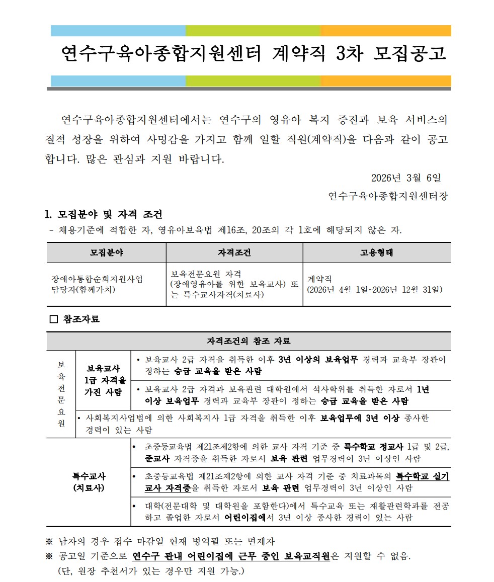[ÀÎõ¿¬¼ö±¸À°¾ÆÁ¾ÇÕÁö¿ø¼¾ÅÍ] 2026³â ¿¬¼ö±¸À°¾ÆÁ¾ÇÕÁö¿ø¼¾ÅÍ Á÷¿ø(°è¾àÁ÷) 3Â÷ ä¿ë °ø°í
