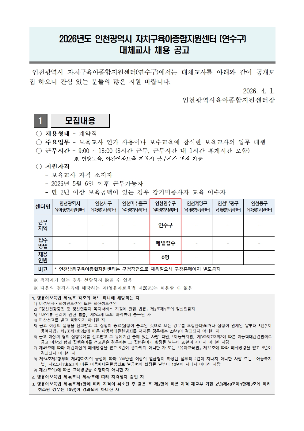 [ÀÎõ¿¬¼ö±¸À°¾ÆÁ¾ÇÕÁö¿ø¼¾ÅÍ] 2026³â ¿¬¼ö±¸À°¾ÆÁ¾ÇÕÁö¿ø¼¾ÅÍ ´ëü±³»ç Áö¿ø»ç¾÷ ´ëü±³»ç ä¿ë °ø°í