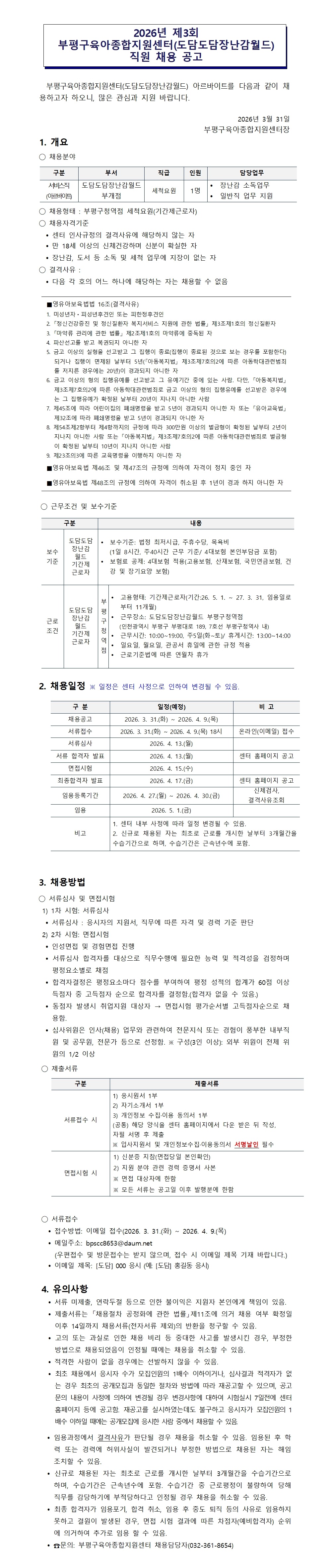 [ºÎÆò±¸À°¾ÆÁ¾ÇÕÁö¿ø¼¾ÅÍ] 2026³â Á¦3ȸ ºÎÆò±¸À°¾ÆÁ¾ÇÕÁö¿ø¼¾ÅÍ(µµ´ãµµ´ãÀå³°¨¿ùµå) Á÷¿ø ä¿ë °ø°í
