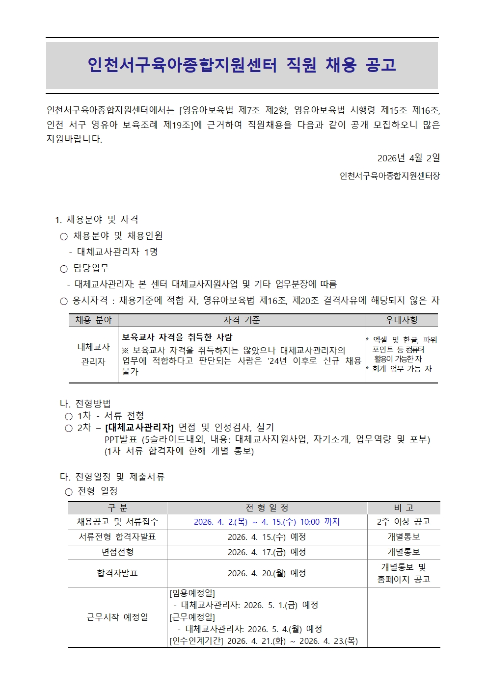 [º» ¼¾ÅÍ] Á÷¿ø ä¿ë °ø°í - ´ëü±³»ç°ü¸®ÀÚ