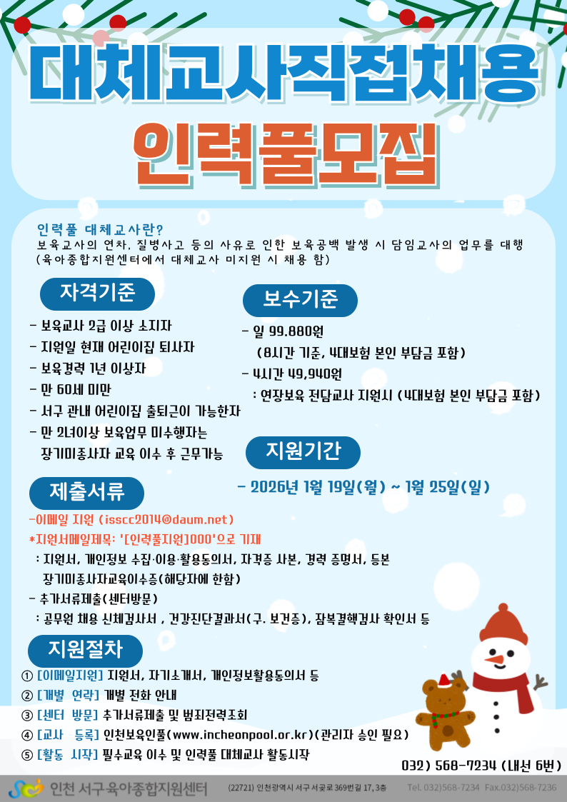 [º»¼¾ÅÍ] ÀÎõ¼±¸À°¾ÆÁ¾ÇÕÁö¿ø¼¾ÅÍ ´ëü±³»ç Á÷Á¢Ã¤¿ë ÀηÂÇ® ¸ðÁý °ø°í