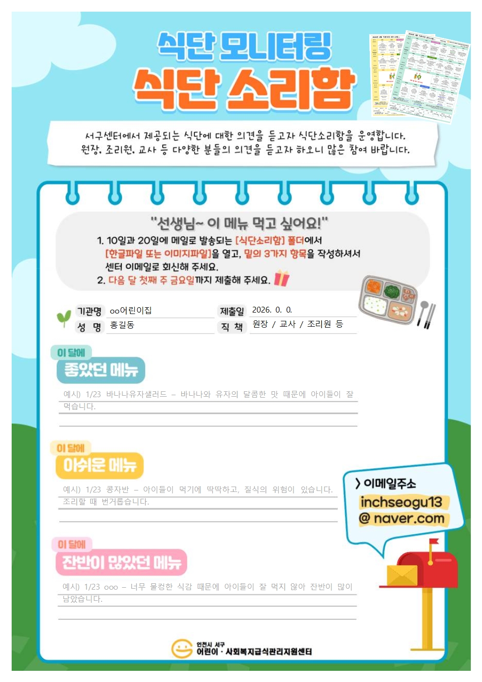 [ÀÎõ¼±¸ ¾î¸°ÀÌ¡¤»çȸº¹Áö±Þ½Ä°ü¸®Áö¿ø¼¾ÅÍ] 3¿ù ½Ä´Ü¾È³» ¹× ½Ä´Ü°¨¼ö