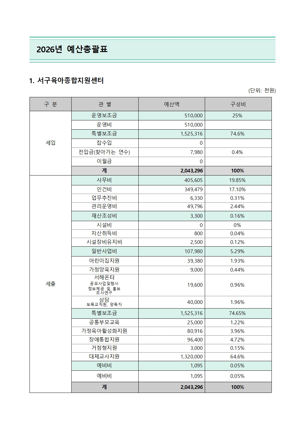 »çȸº¹Áö¹ýÀÎ ¹× »çȸº¹Áö½Ã¼³ À繫ȸ°è±ÔÄ¢ Á¦19Á¶2Ç×ÀÇ ±ÔÁ¤¿¡ µû¶ó 2026³â ÀÎõ¼±¸À°¾ÆÁ¾ÇÕÁö¿ø¼¾ÅÍ ¿¹»êÃѰýÇ¥¸¦ ¾Æ·¡¿Í °°ÀÌ °ø°íÇÕ´Ï´Ù.